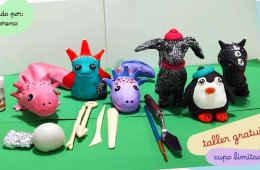 Escultura formada por un mosaico de concha de un personaje que sale de las fauces de un animal.