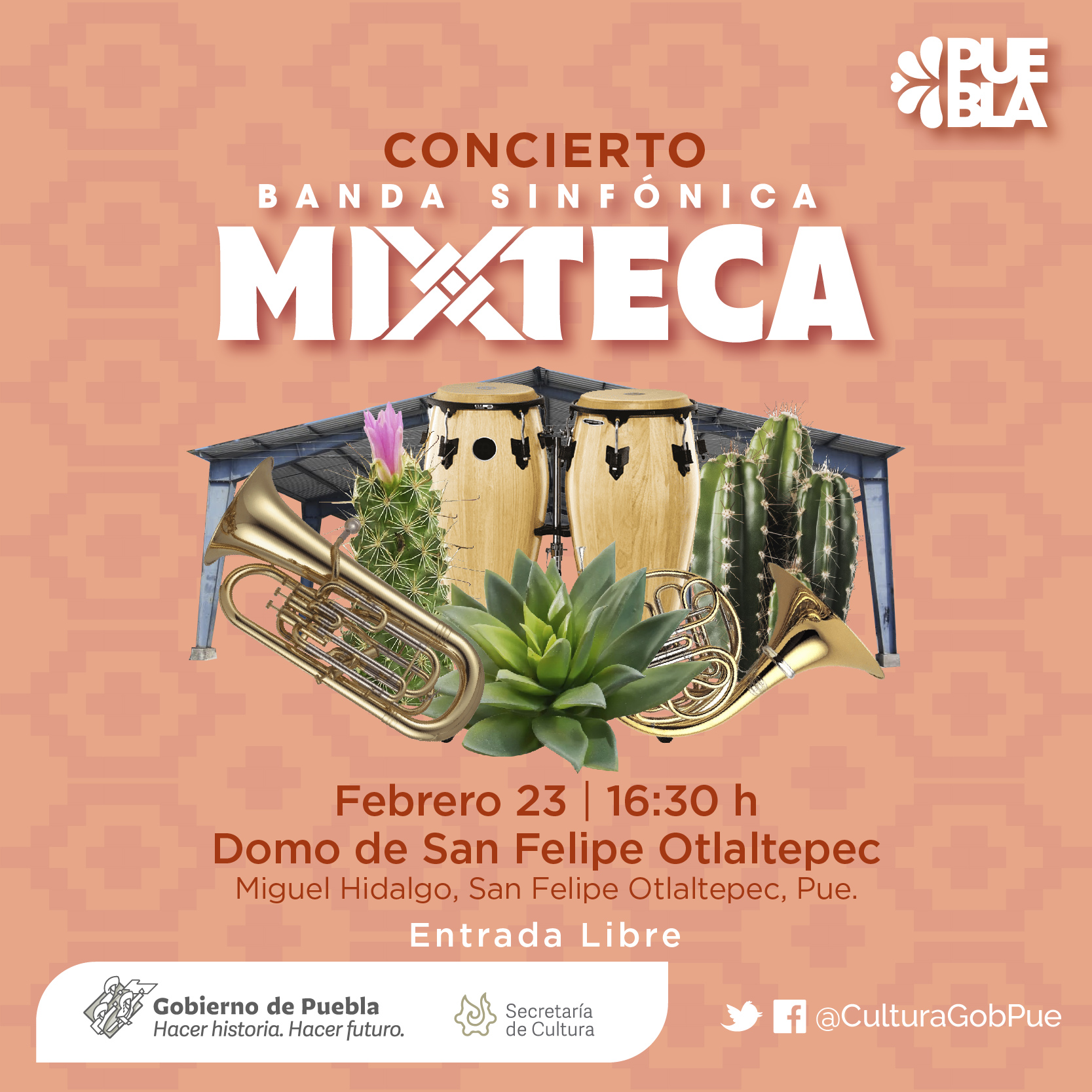 Te invitamos a que acudas al concierto que ofrecerá la Banda Sinfónica Mixteca en el Domo de San Felipe Otlaltepec.