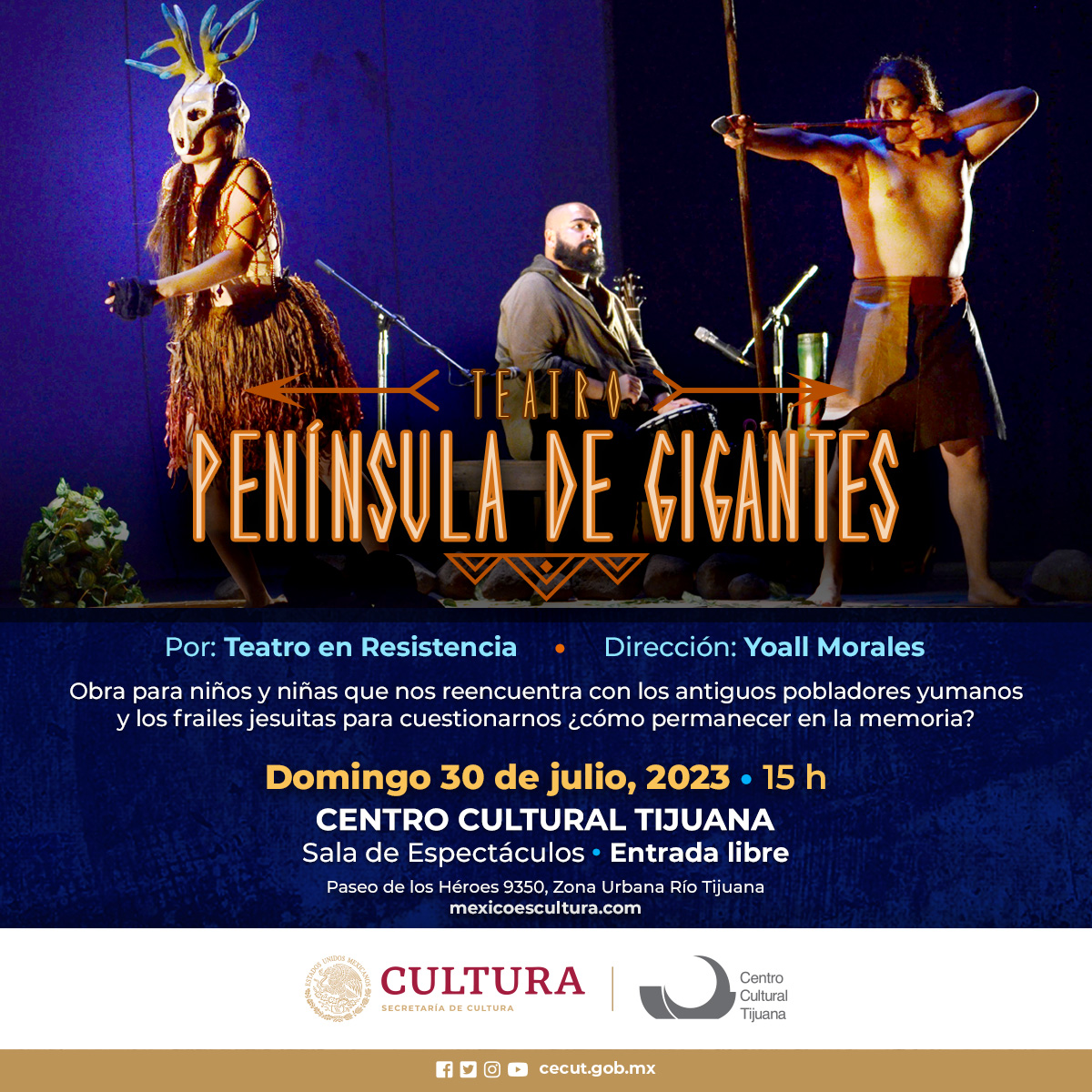 Península de gigantes es una obra de teatro para niños y niñas, que nos regresa al encuentro y sincretismo de los antiguos pobladores yumanos con los frailes jesuitas para cuestionarnos: ¿Cuál es nuestra verdadera identidad? ¿Hasta dónde llegan nuestras raíces? Y lo más importante… ¿Cómo permanecer en la memoria?