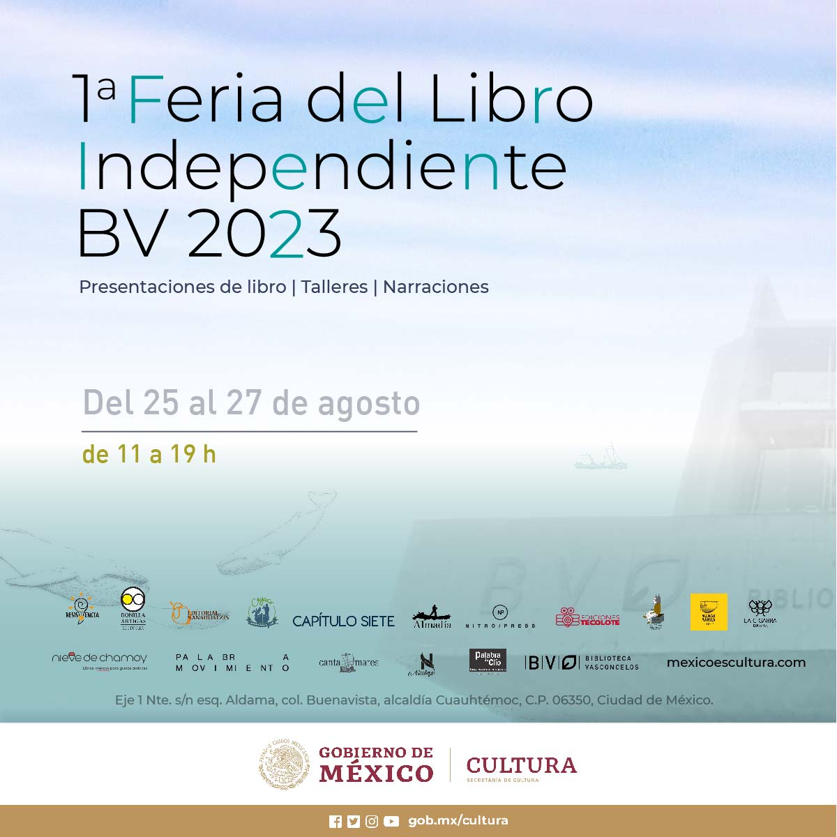 La primera Feria del Libro Independiente BV 2023 llega a la Biblioteca Vasconcelos del 25 al 27 de agosto.