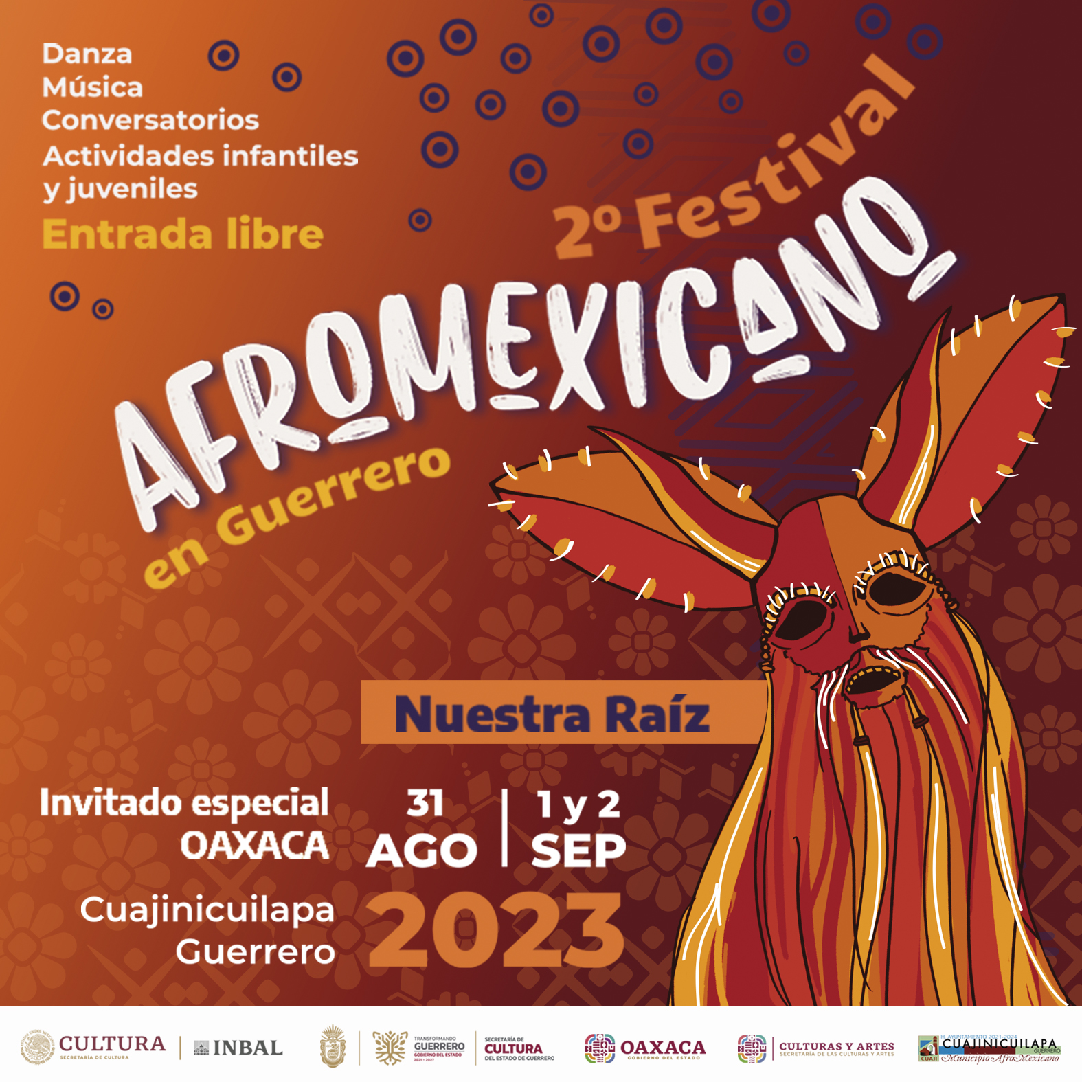 Con el objetivo de visibilizar, fortalcer y preservar la identidad afromexicana que radica en la entidad y ampliar el acceso a la cultura por medio de diversas expresiones artísticas se realizará el “2° Festival Afromexicano en Guerrero: Nuestra Raíz 2023”, en el municipio de Cuajinicuilapa, Guerrero, del 31 de agosto al 2 de septiembre.