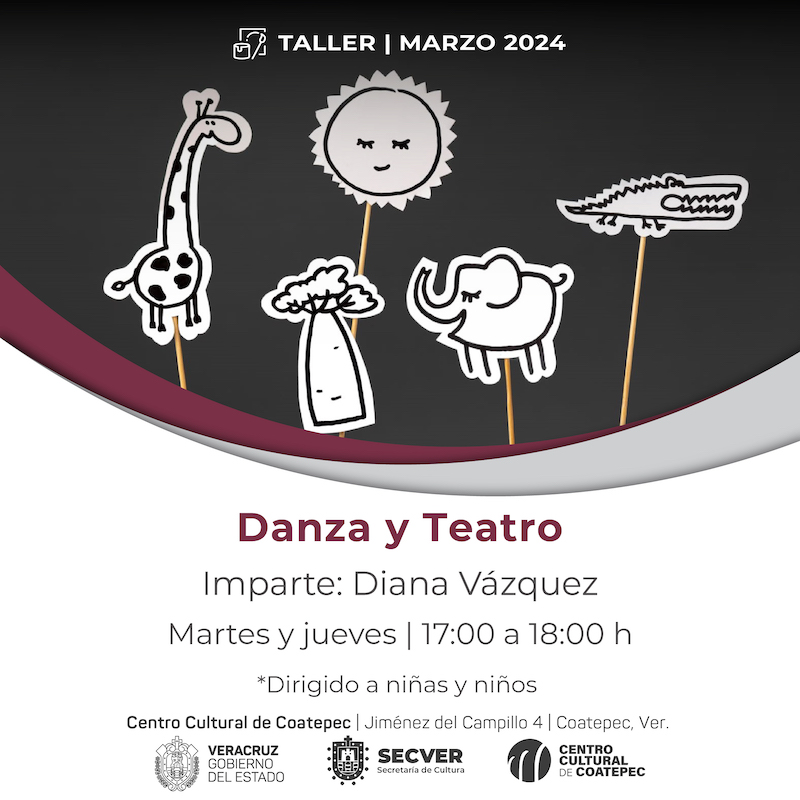 Como parte de las actividades programadas del Centro Cultural de Coatepec, se realizará el taller de Danza y Teatro, el cual será impartido por Diana Vázquez y está dirigido a niñas y niños de 7 a 12 años.
