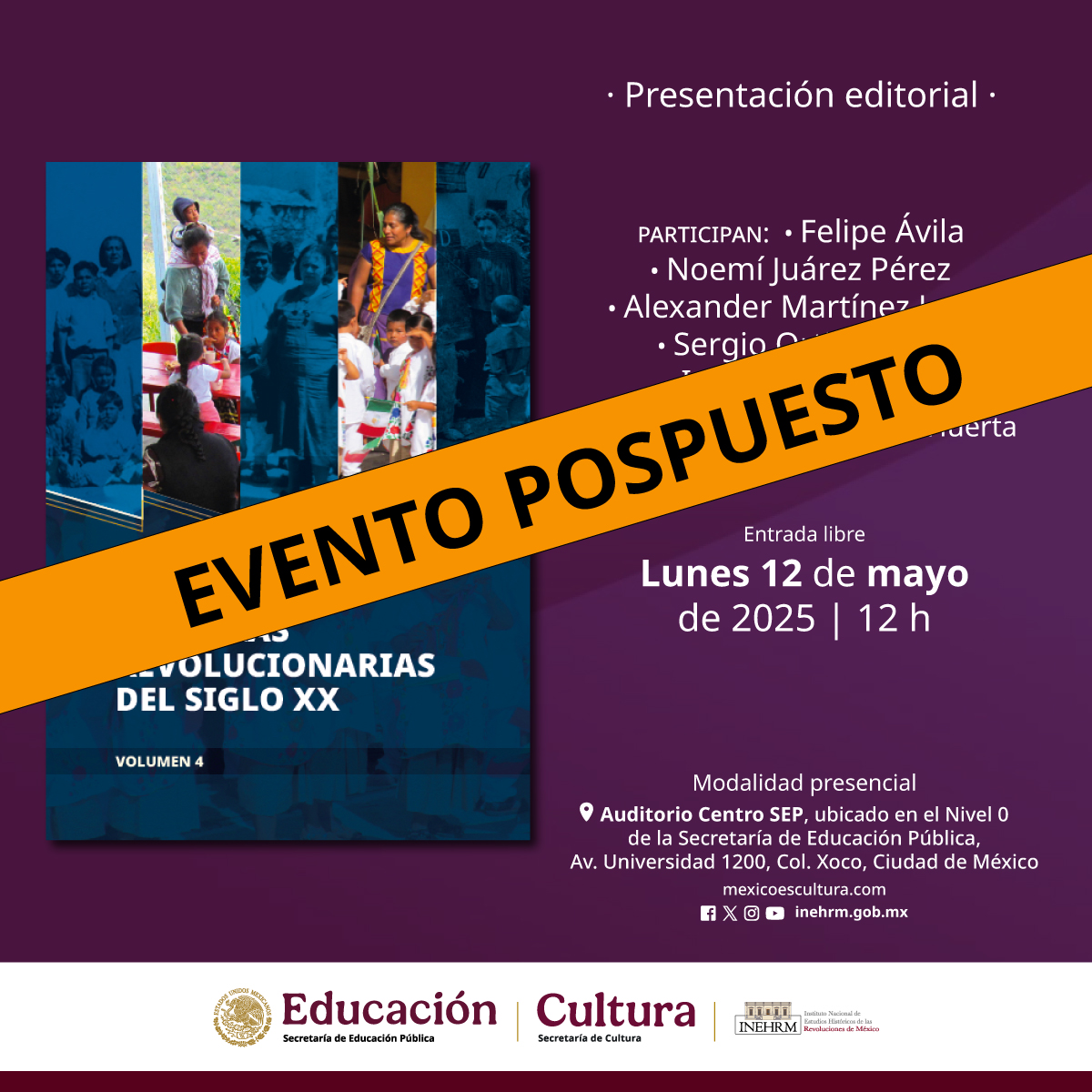 Presentación del libro: “Maestras revolucionarias del siglo XX”, México, Secretaría de Cultura, INEHRM, 2025 (Col. Las maestras de México, Vol. IV).