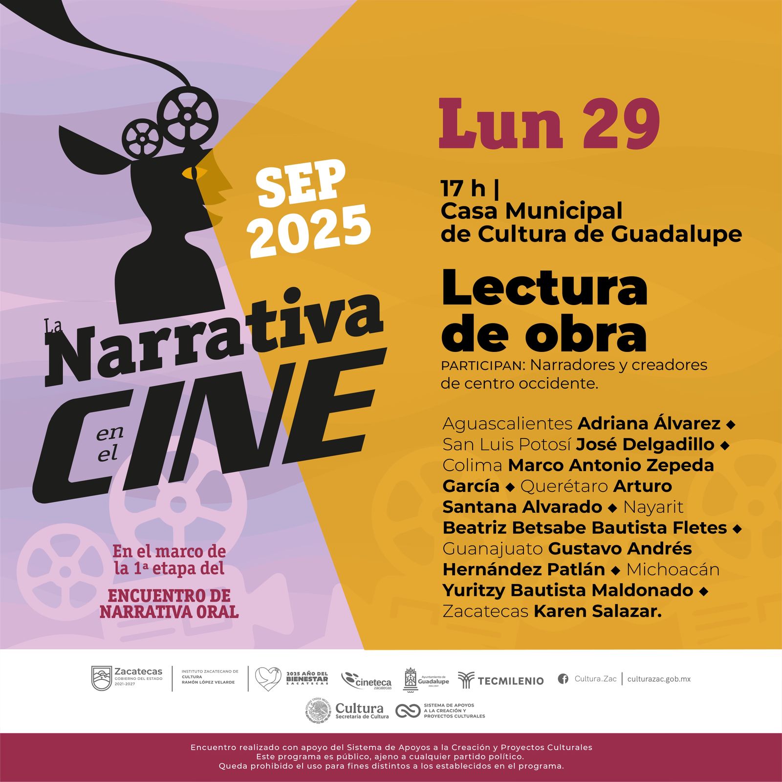Narradores y creadores del Centro-Occidente participan en el Encuentro de Narrativa Oral, con lecturas y presentaciones de obras en la Casa Municipal de Cultura de Guadalupe.