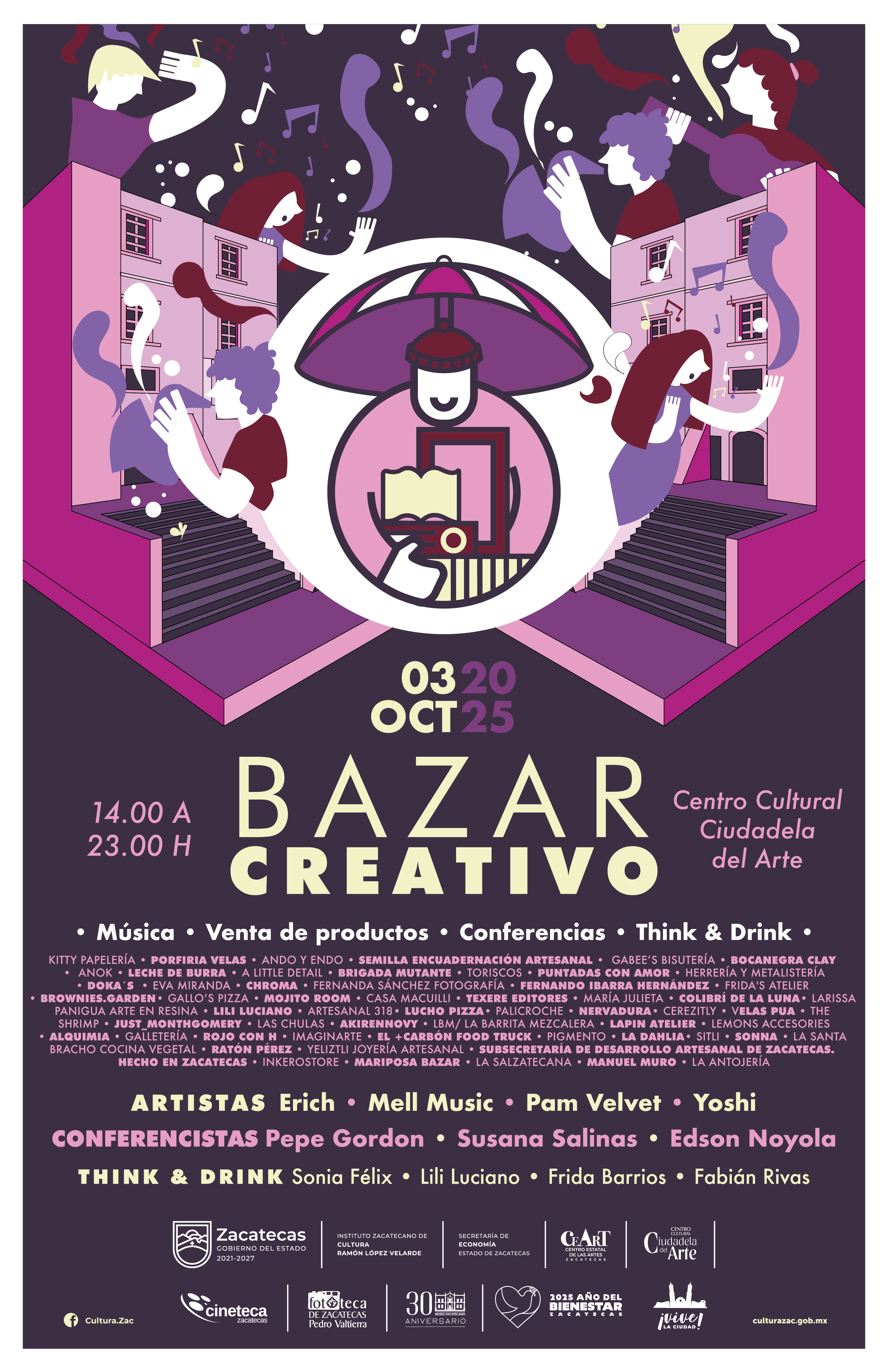 Este 3 de octubre, a partir de las 14:00 horas, el Centro Cultural Ciudadela del Arte será sede del Bazar Creativo, un espacio con música en vivo, venta de productos, conferencias y la dinámica Think & Drink.