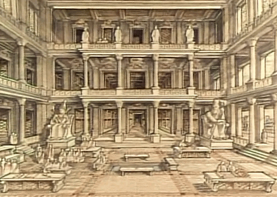 Fue una de las bibliotecas más importantes y prestigiosas, así como uno de los mayores centros de difusión del conocimiento en la Antigüedad. Instituida en el siglo III a. C. en el complejo palaciego de la ciudad de Alejandría durante el período helenístico del Antiguo Egipto, la biblioteca formaba parte de una institución de investigación conocida como Museion, que estaba dedicada a las musas, las nueve diosas de las artes.