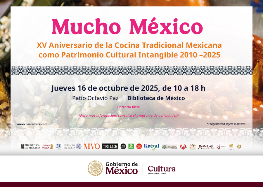 Mucho México será un encuentro entre las letras y los sabores de la cocina mexicana, que celebra el 15 aniversario de su reconocimiento como Patrimonio Mundial por la UNESCO. Una invitación a las y los mexicanos, y visitantes, a conocer y compartir aspectos que van mucho más allá del registro ante el organismo internacional, convocando también a expertos, investigadores, autores y otras personas que han sido clave en este trabajo que, a quince años de distancia, tiene mucho qué hacer, compartir, y celebrar.