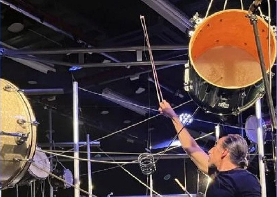 Este performance toma como eje principal una batería suspendida en el aire, interconectada por cuerdas de piano y resortes, transformando los tambores en resonadores. Asiste a este show y disfruta del talento e ingenio de Milo Tamez y Jerónimo Naranjo.