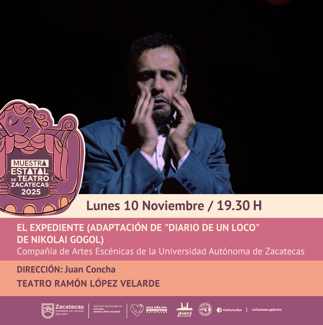La Compañía de Artes Escénicas de la UAZ, dirigida por Juan Concha, presenta la obra El expediente dentro de la Muestra Estatal de Teatro Zacatecas 2025. Una invitación a disfrutar del arte teatral y del talento zacatecano en una puesta en escena que promete intensidad y profundidad.