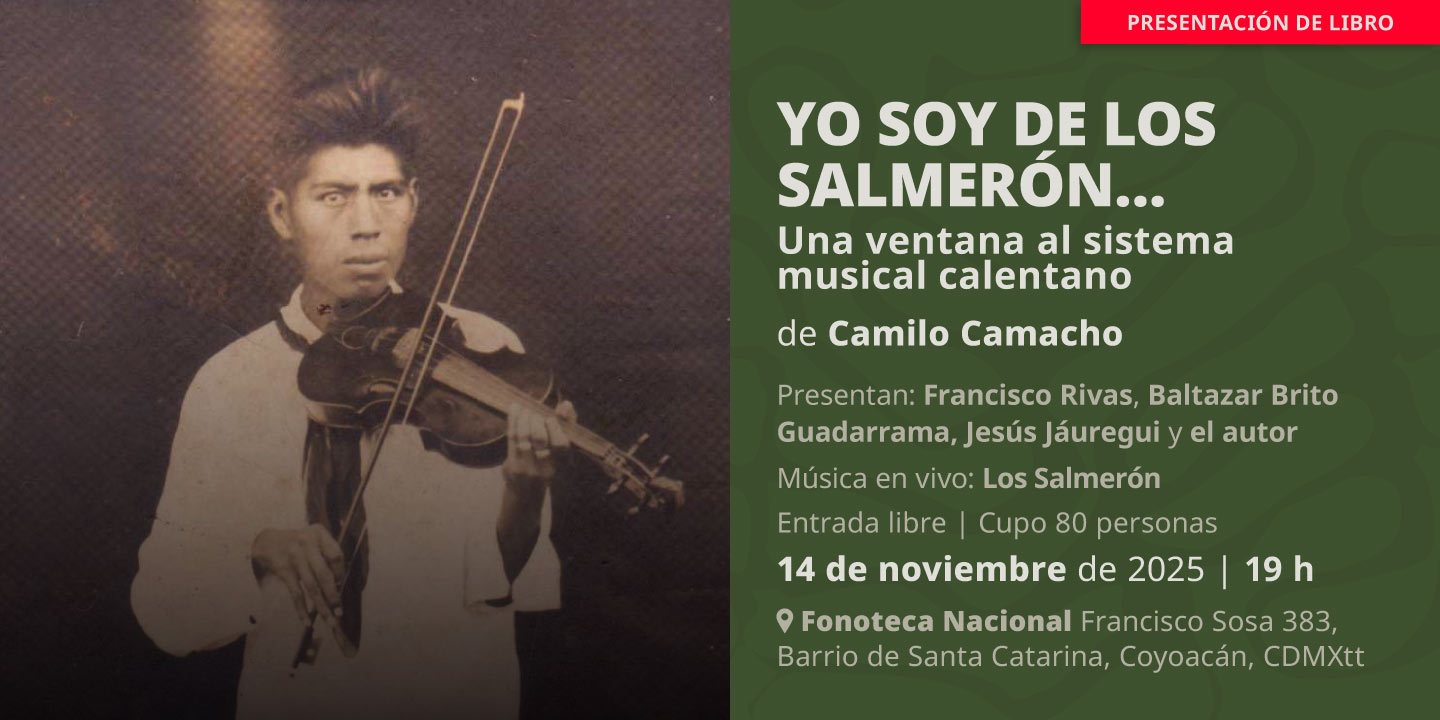 Este libro es fruto de años de diálogo y práctica musical con la tradición calentana en Tlapehuala, Guerrero y la Ciudad de México. En esta presentación se ofrecerá una visión integral del sistema musical del río Balsas, acompañada de ejemplos en audio, partituras, transcripciones y fotografías históricas.