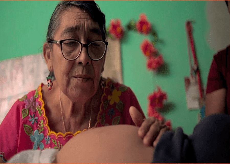 Retrato de las parteras mayas que hacen ultrasonidos con sus manos, quienes respetan la naturaleza de lo vivo y que contrastan con el mundo actual.