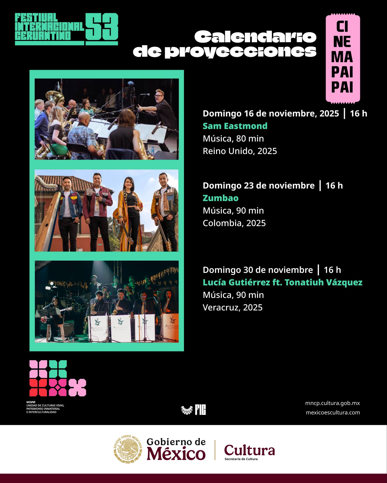 A propósito de la edición 53 del Festival Internacional Cervantino, realizado del 10 al 26 de octubre, en Guanajuato, Cinema Pai Pai recupera las transmisiones en vivo de las presentaciones musicales que se realizaron a lo largo del festival.