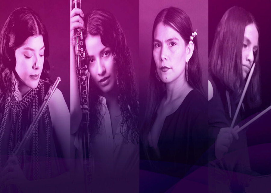 Tatiana Fresnillo, clarinete. Paulina Fuentes, flauta. Aurora González, cantante. Alondra Ayala, percusión.