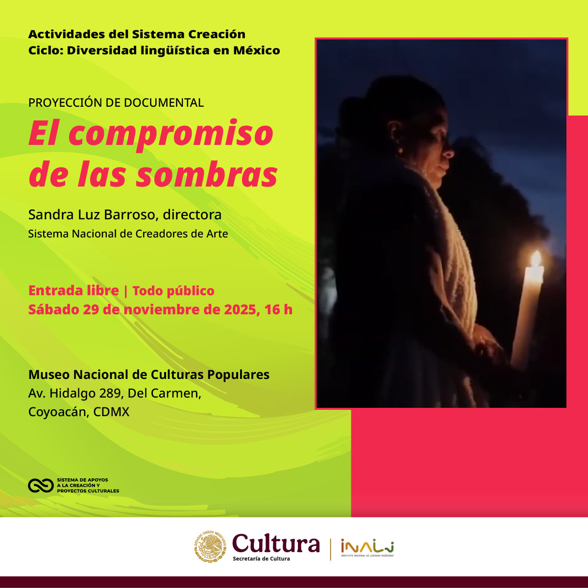 El compromiso de las sombras" de la directora Sandra Luz Barroso (SNCA) presenta a una mujer transexual afrodescendiente, quien es la encargada de guiar los rituales fúnebres de una pequeña comunidad de Guerrero. Conoce la historia en el Museo Nacional de Culturas Populares.