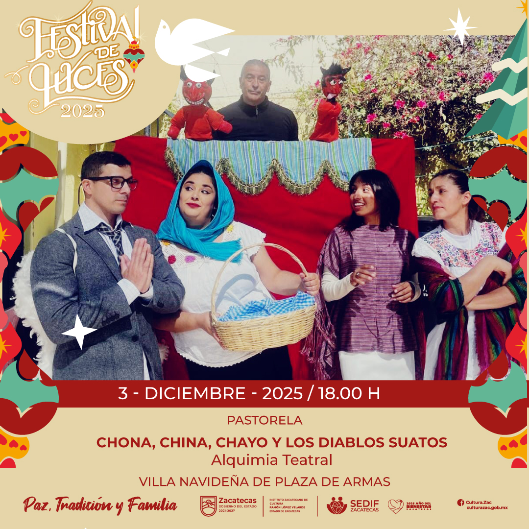 La Villa Navideña de Plaza de Armas recibirá la pastorela “Chona, china, chayo y los diablos suatos”, puesta en escena por la agrupación Alquimia Teatral. La presentación forma parte de las actividades decembrinas que buscan promover el arte local y las tradiciones comunitarias.