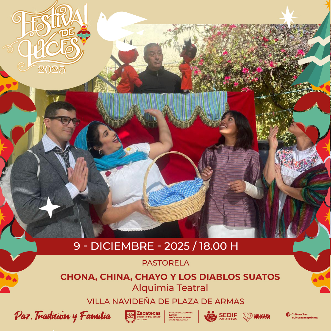La Villa Navideña de Plaza de Armas abre sus puertas al talento local con la pastorela “Chona, China, Chayo y los Diablos Suatos”, presentada por la compañía Alquimia Teatral. La obra combina comedia, picardía y costumbres populares, convirtiéndose en una opción ideal para disfrutar en familia.