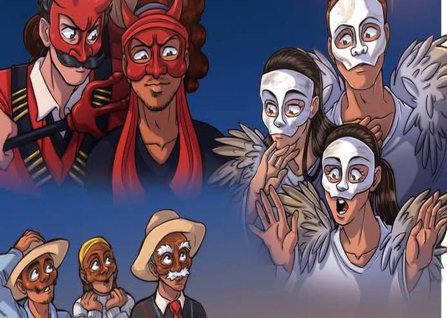Los ángeles y los diablos se enfrentan en una batalla cómica por guiar a los pastores a Belén.