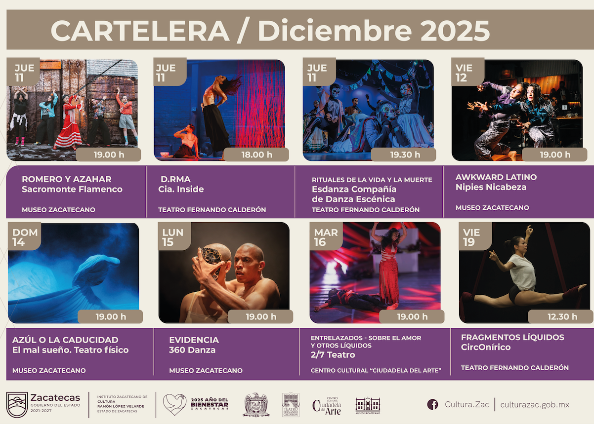 Del 11 al 19 de diciembre, Zacatecas vuelve a convertirse en un escenario vivo con la presencia de agrupaciones dancísticas que forman parte de la Temporada de Danza 2025. Una semana donde el talento local y la disciplina artística se unen para acercar la cultura a todas y todos.