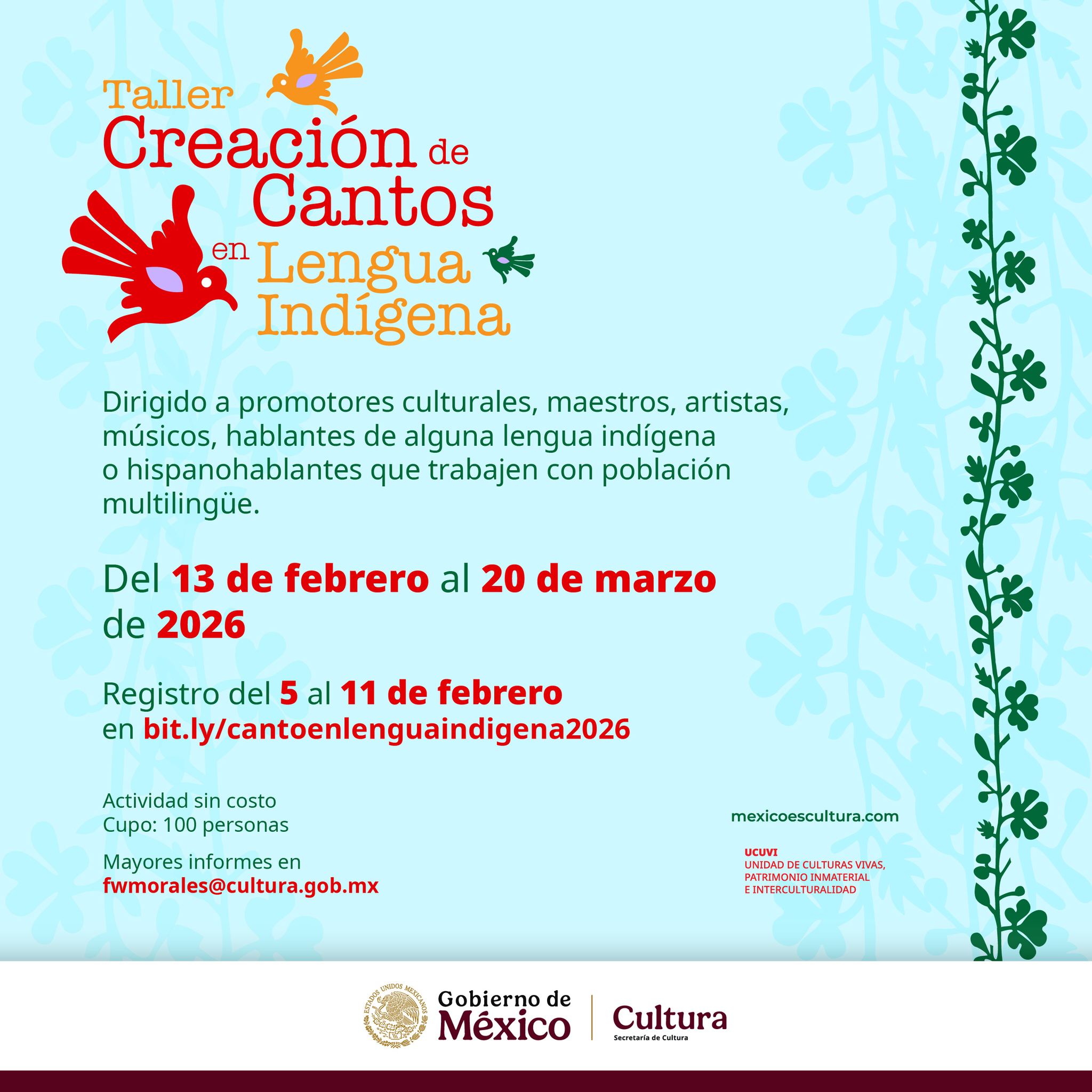 Inscríbete aquí: https://bit.ly/cantoenlenguaindigena2026