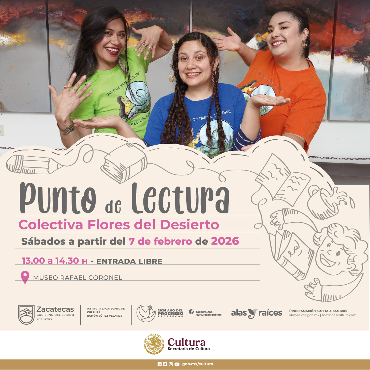 Asiste al Punto de Lectura a cargo de la colectiva Flores del Desierto, una invitación a compartir la palabra, reflexionar en comunidad y redescubrir la lectura como encuentro cultural. Una actividad abierta al público que enriquece la experiencia del museo y fortalece el intercambio de ideas.