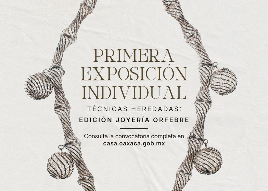 Esta convocatoria tiene el propósito de reconocer y apoyar a personas oaxaqueñas que hayan demostrado un dominio extraordinario en la producción de piezas de joyería orfebre utilizando técnicas heredadas, brindándoles la oportunidad de exponer sus piezas en el interior de la galería Chalet del CaSa.
