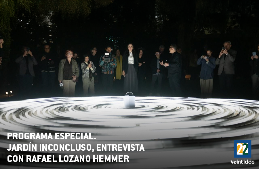 En este programa especial el cronista Guillermo Osorno entrevista al artista Rafael Lozano Hemmer sobre su instalación artística nocturna "Jardín inconcluso", que se presenta en el Museo de Arte Moderno de la Ciudad de México.