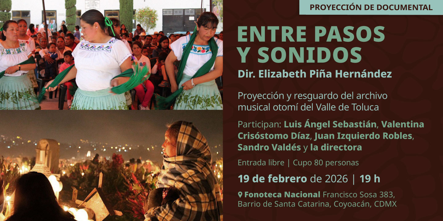 Te invitamos a la proyección del documental “Entre pasos y sonidos” de la directora Elizabeth Piña Hernández, una mirada profunda a la música y la danza del pueblo otomí del Valle de Toluca. Esta actividad se suma a la conmemoración del Día Internacional de la Lengua Materna y contempla la entrega oficial de un archivo sonoro con música otomí, que se integra a nuestro acervo para su resguardo como parte fundamental de la memoria sonora de México.