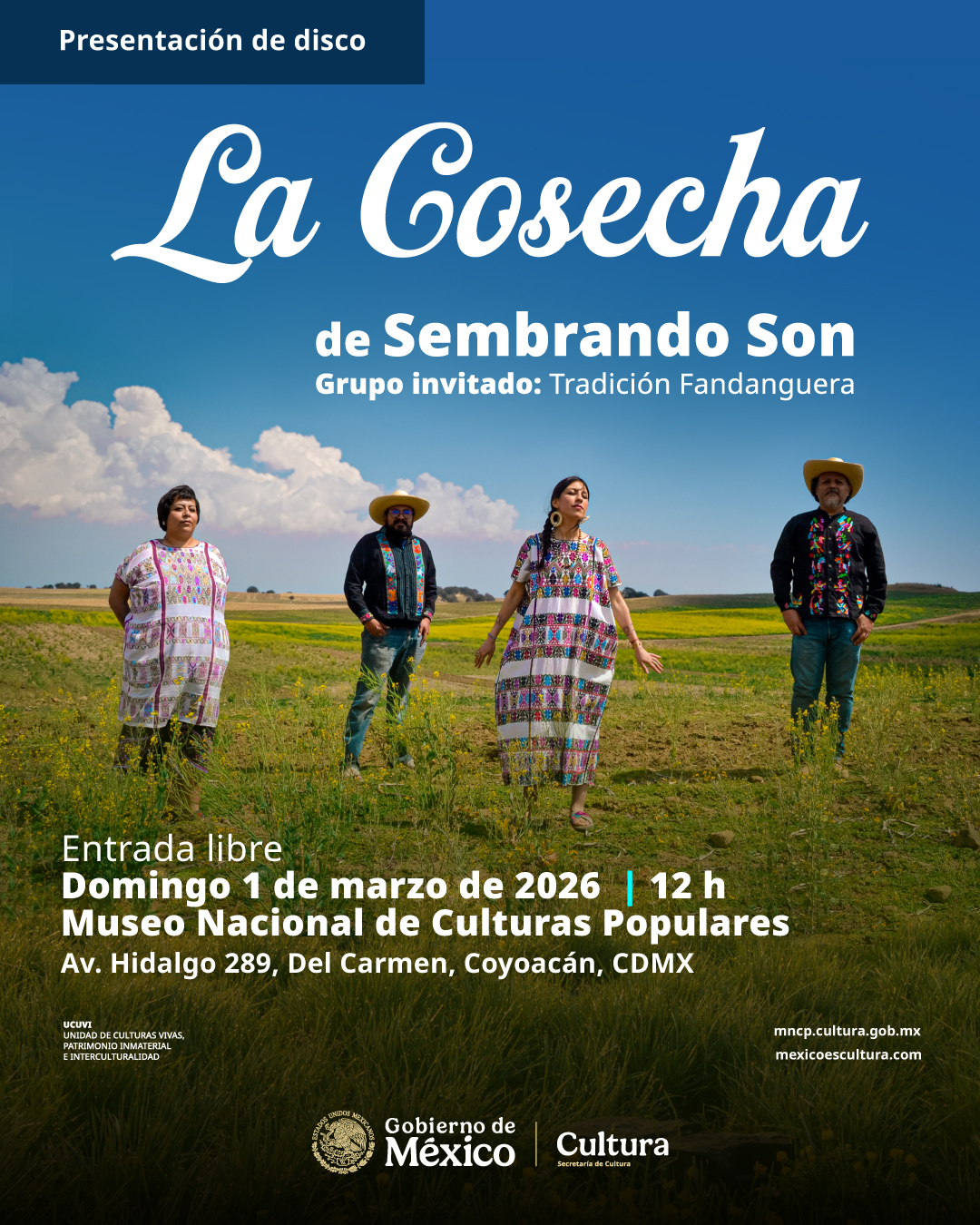 El colectivo La Cosecha, agrupación de música tradicional mexicana, presentará su nuevo material discográfico, "Sembrando Son” en compañía del grupo invitado Tradición fandanguera