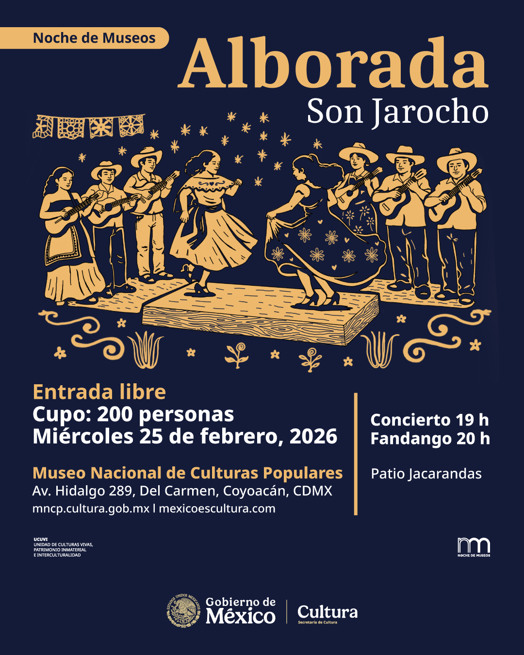 El son jarocho llega al Museo Nacional de Culturas Populares con Alborada, en una noche de música, improvisación y tradición viva.