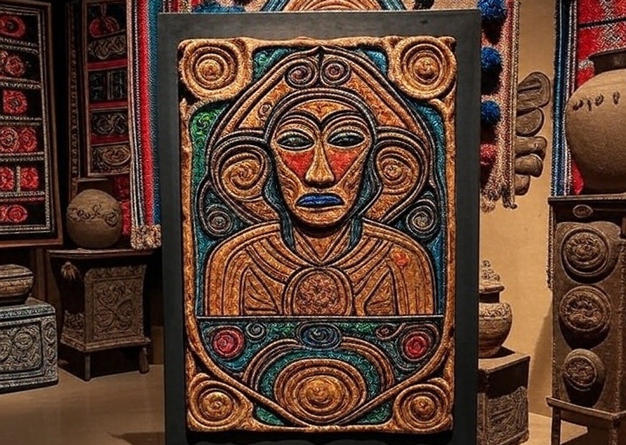 Consta de 22 piezas que simulan el desgaste del tiempo, retomando la estética del arte novohispano y la iconografía religiosa del siglo XIX para resignificarla desde una perspectiva contemporánea y decolonial.