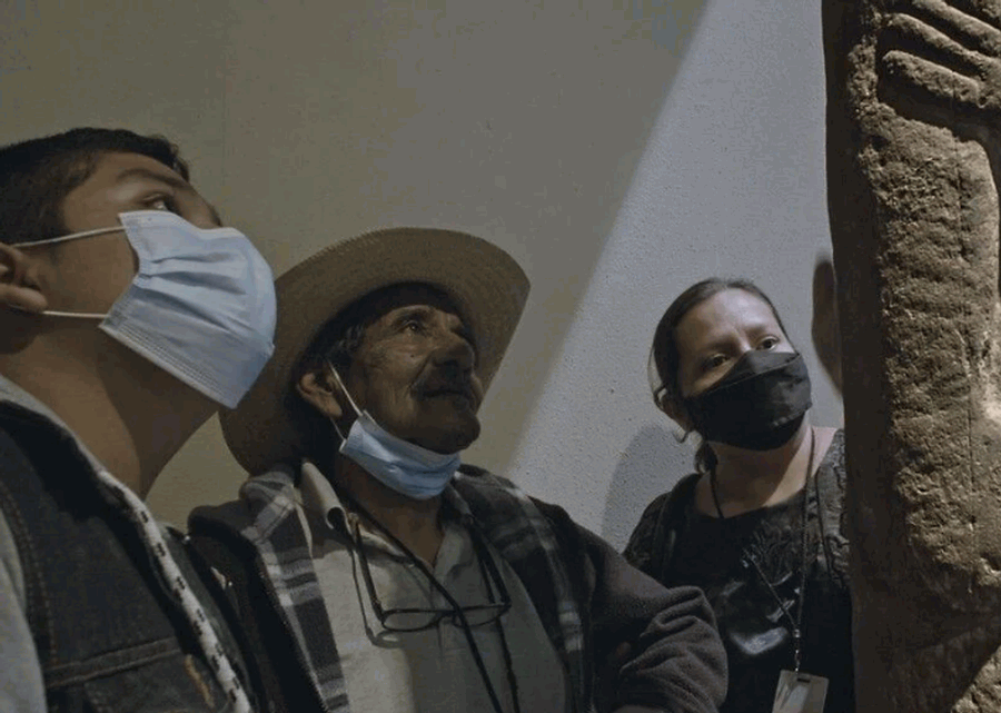 Mientras trabajaba en su tierra, Candido encontró un dios zapoteca tallado en piedra, tiempo después fue arrebatado. Hoy a sus 74 años, Candido, junto a Edith y Carlos, buscan que sea devuelto a la comunidad para que habite el Museo Comunitario de la Cultura Zapoteca.