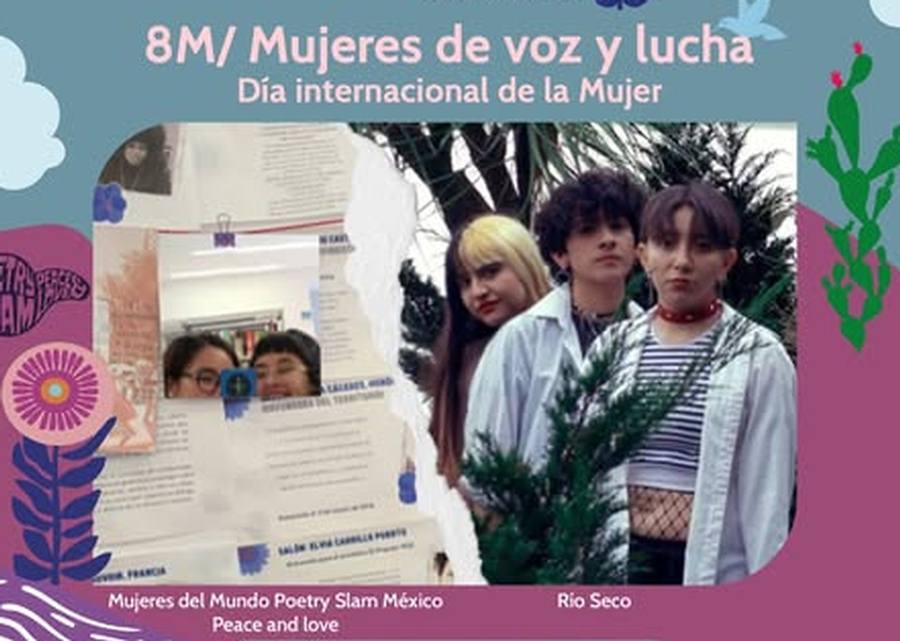 En la poesía participan mujeres de Mundo Poetry Slam México, colectivo Paece and Love, quienes compartirán textos propios y su mirada crítica y creativa. Además, se realizará una dinámica colectiva de escritura para crear un poema que represente la experiencia y voz de las asistentes.
