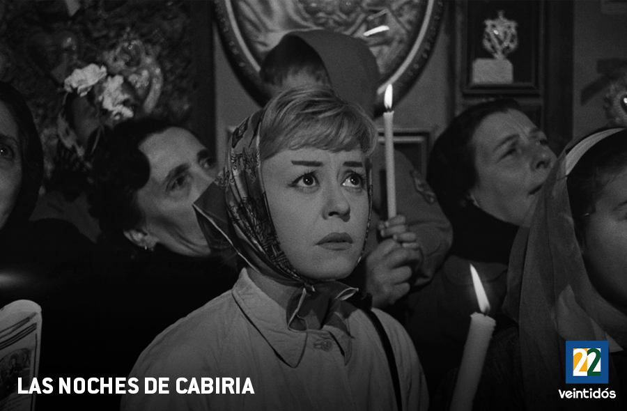 Las noches de Cabiria cuenta la historia de una prostituta dulce, ingenua y romántica que se convierte en víctima de su pareja. Él la arroja al río tras haberle robado su dinero. A pesar de ello, Cabiria no duda en volver a involucrarse con otro amante, esta vez se trata de un actor de cine que también la engaña.