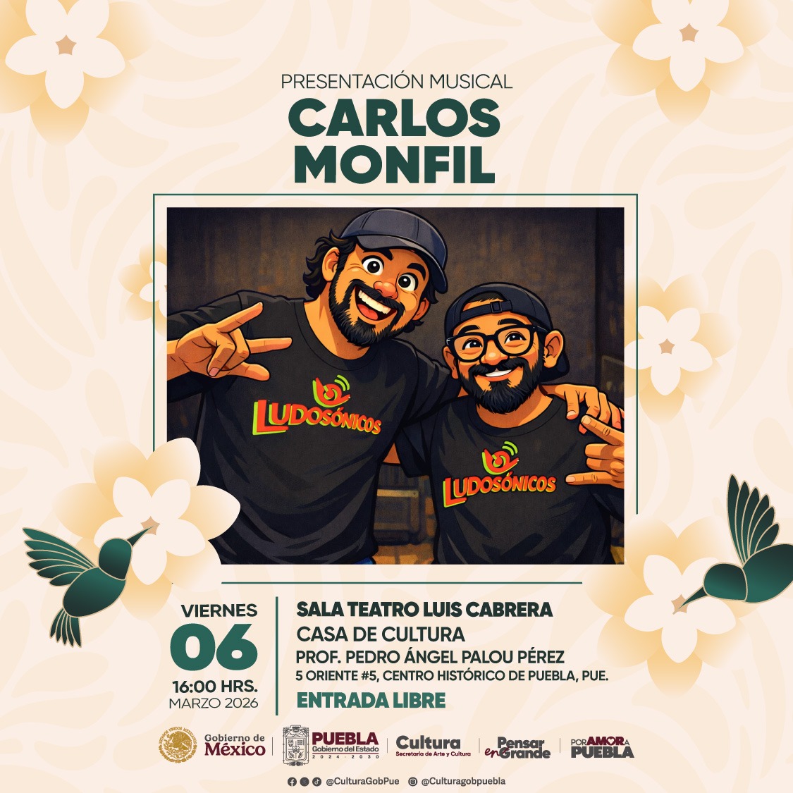 La Secretaria de Arte y Cultura te hace un cordial invitacion a esta gran presentacion musical, presentada por Carlos Monfil