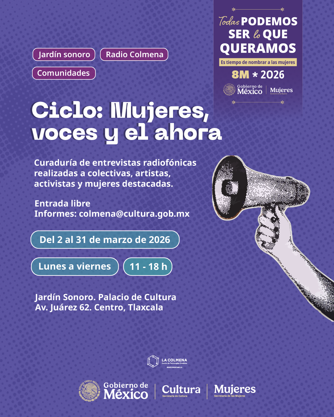 Este ciclo especial conmemorativo del Día Internacional de la Mujer reúne una selección de programas previamente publicados, conformando un recorrido sonoro que recupera voces, reflexiones y experiencias de mujeres que han formado parte de nuestra historia radiofónica.
