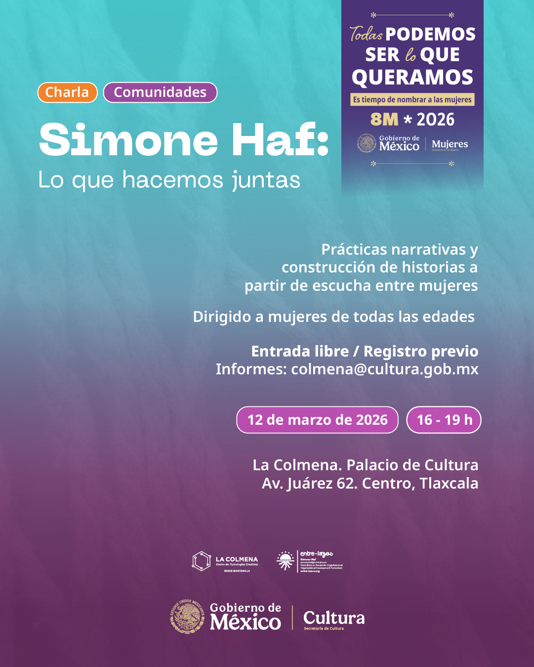 A través de un espacio seguro y horizontal, se invita a las mujeres a compartir momentos en los que se han sentido acompañadas, así como aquellos en los que han brindado apoyo a otras. El punto de partida es reconocer que las historias personales contienen saberes valiosos que, al entrelazarse, generan comunidad.