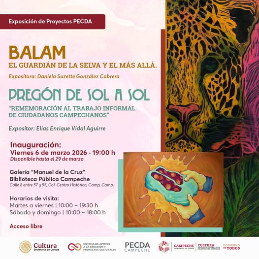Dos exposiciones que exploran la memoria, la identidad y la relación con nuestro entorno: “Balam; El guardián de la selva y el más allá” y “Pregón de sol a sol; Rememoración al trabajo informal de ciudadanos campechanos”