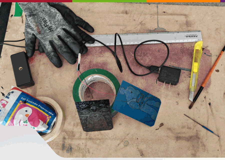 El Taller de Electrólisis Casera es un espacio de experimentación artística donde exploraremos el grabado en metal mediante un proceso ecológico y accesible.