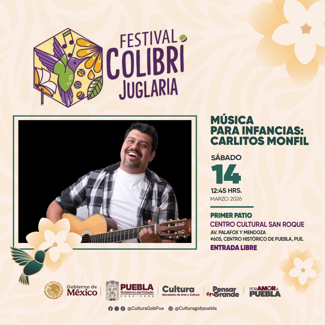 La secretaria de Arte y Cultura te invita a ser parte de esta exposicion musical enfocado en los mas pequeños del hogar, impartido por Carlitos Mofil