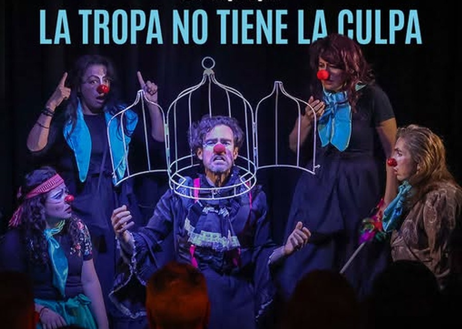 En La Tropa No Tiene la Culpa , una directora anuncia con absoluta seriedad que tres actrices han abandonado la obra y, en medio del caos, debe convocar de emergencia a un nuevo elenco. Lo que para ella es una tragedia, para el publico se convierte en una comedia desbordante. La situación se intensifica con la llegada de una tropa de cinco payasas y un payaso, quien no solo intentaran sacar adelante la puesta en escena, sino también cuestionar la visión de la directora y las palabras de Garcia Lorca.