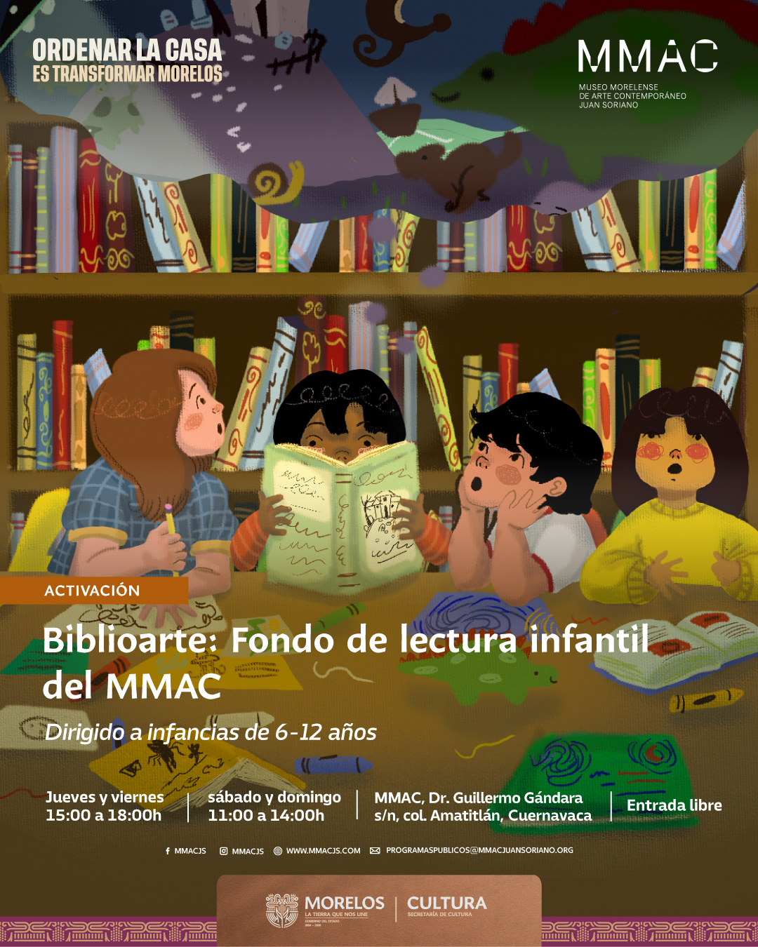 Biblioarte es el fondo infantil de la Biblioteca del MMAC, concebido como un espacio permanente de lectura y acercamiento al arte contemporáneo para infancias.