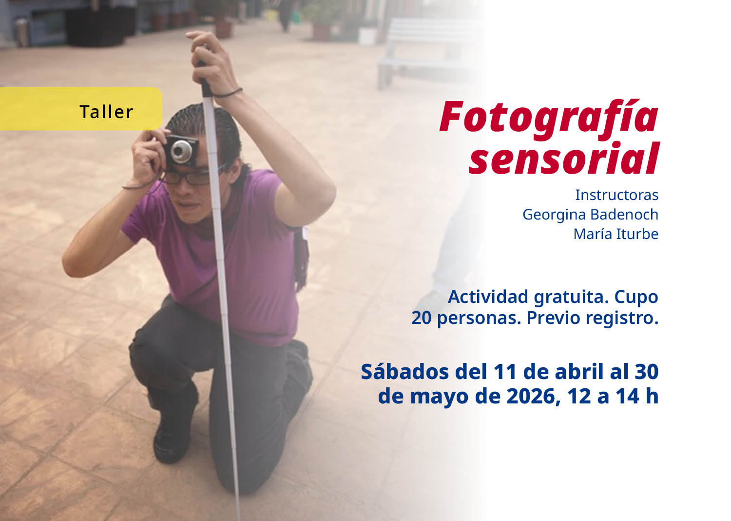 La finalidad de este taller es crear un espacio seguro, accesible y significativo para que personas con discapacidad visual desarrollen habilidades fotográficas desde un enfoque sensorial, fortaleciendo su expresión creativa, autonomía y participación cultural.