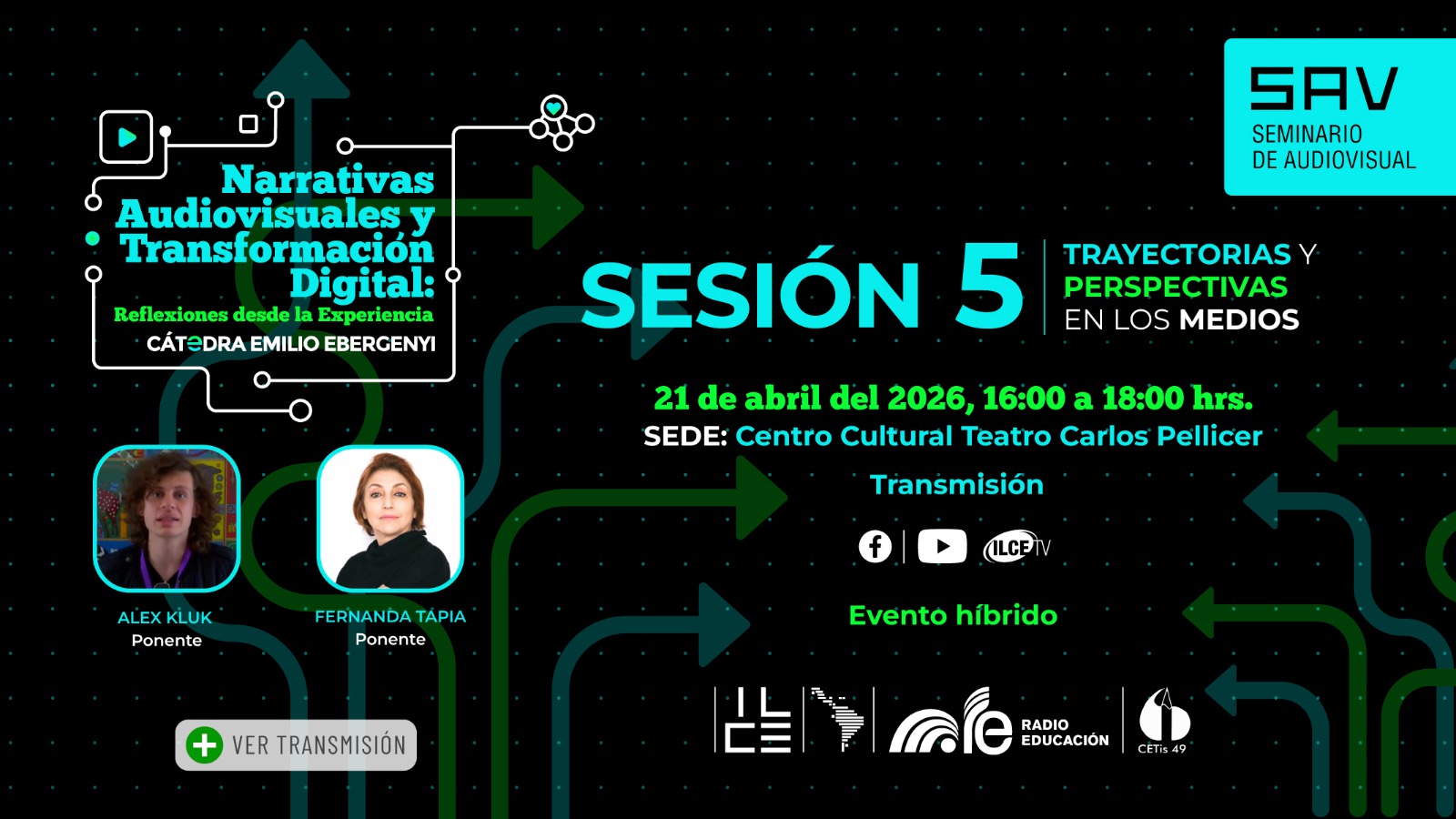 Te invitamos a formar parte de Narrativas audiovisuales y transformación digital: Reflexiones desde la experiencia. Cátedra Emilio Ebergenyi, que en su 5a. sesión, abordará el tema Trayectorias y perspectivas en los medios.