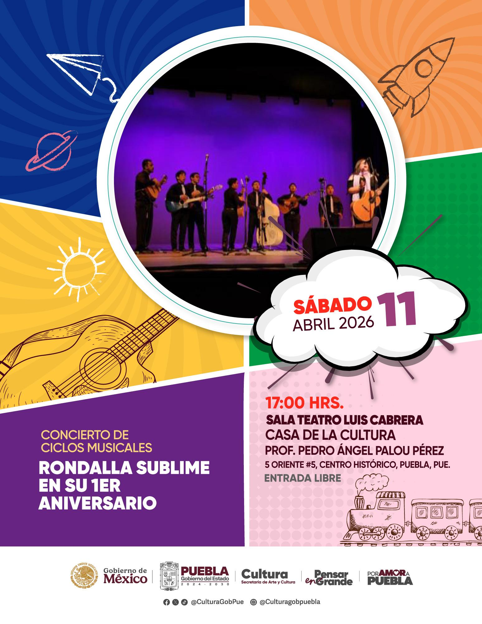 La Secretaria de Arte y Cultura te invita a fotmar parte de una de las melodias mas significativas para la musica. Se celebra el 1er aniversario de la Rondalla Sublime dentro de los conciertos de ciclos musicales