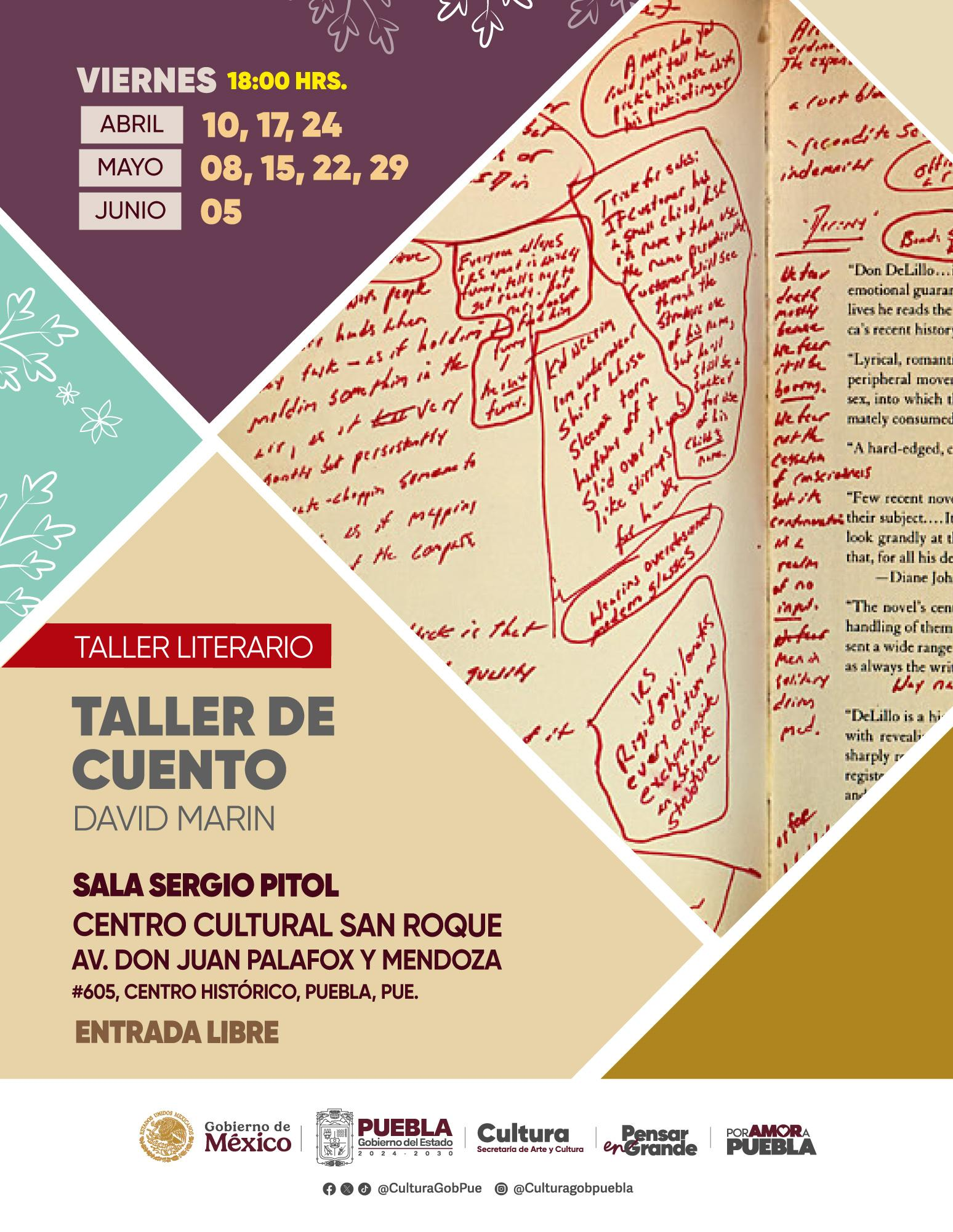 Este abril, mayo y junio, La Secretaria de Arte y Cultura te invita al Taller Literario: Taller de Cuento.