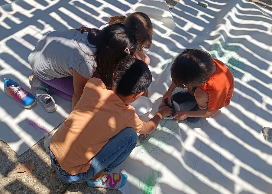 Las niñas y los niños jugarán con dibujos, palabras, colores, papeles y sellos en grandes publicaciones con la que integrarán una instalación que se montará en la explanada del museo.