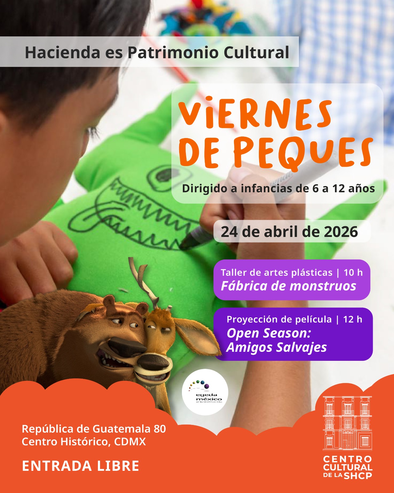 En nuestro #ViernesDePeques de abril, las infancias participarán en el taller "Fábrica de monstruos" y disfrutarán de la película "Open season: amigos salvajes"