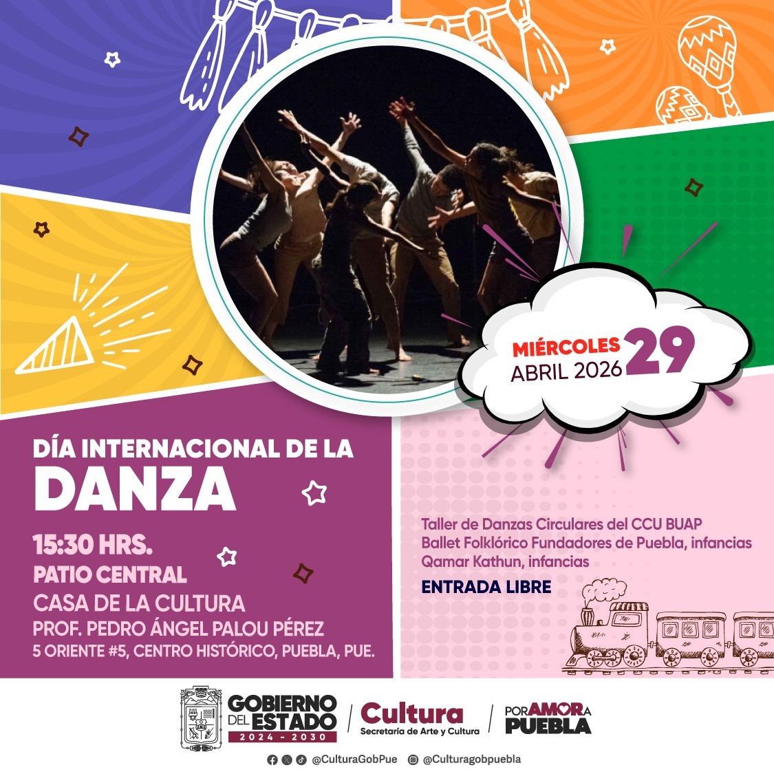 La secretaria de Arte y Cultura te invita a ser parte del Dia Internacional de la Danza, un taller del CCU BUAP, para foemnetar la cultura artistica de la danza folklórica.