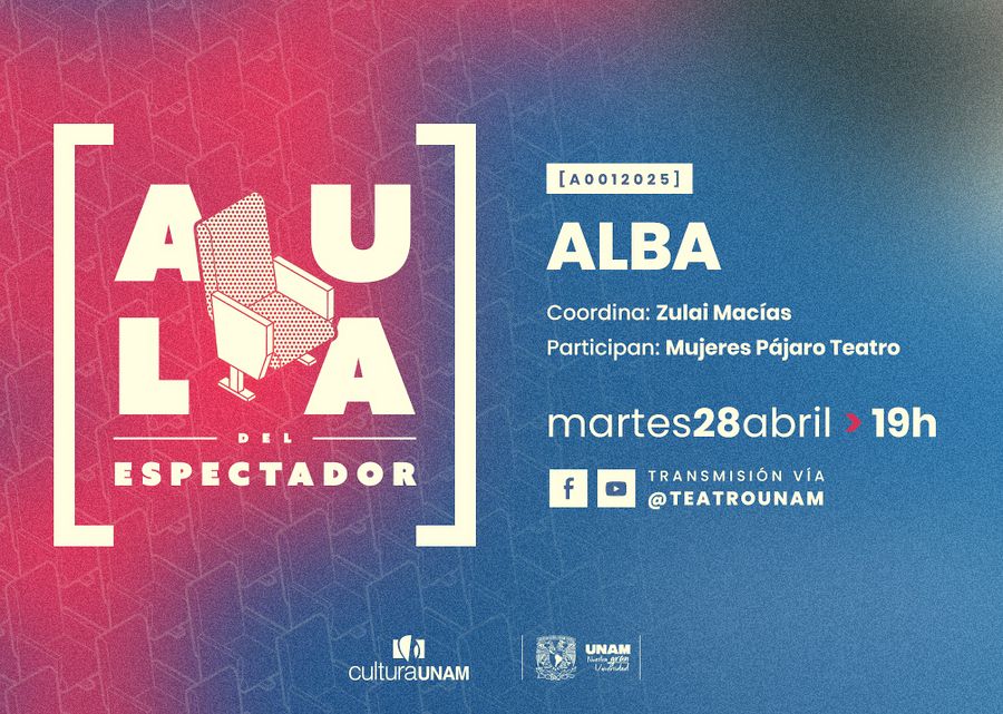 Esta sesión de "Aula del espectador", de Teatro UNAM, estará dedicada a Alba: obra con autoría y dirección de Valentina Manzini Valdés, realizada por la compañía Mujeres Pájaro Teatro.
