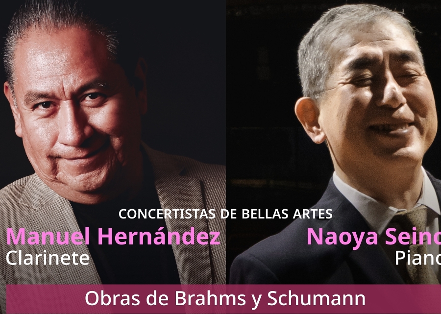 Los Concertistas de Bellas Artes, Manuel Hernández y Naoya Seino, interpretan obras de Johannes Brahms y Clara Schumann en un programa que evoca la intimidad de una velada musical.